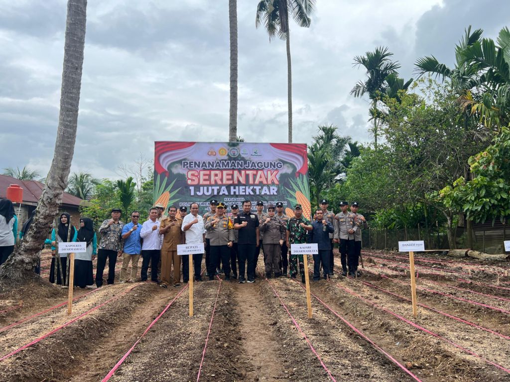 Kegiatan ini merupakan bagian dari program penanaman jagung serentak seluas 1 juta hektare di seluruh Indonesia, yang diprakarsai oleh Polri bersama Kementerian Pertanian. Sebelum pelaksanaan penanaman, Kapolres Dharmasraya bersama Forkopimda dan perwakilan kelompok tani mengikuti video konferensi yang disiarkan langsung dari Subang, Jawa Barat. Acara tersebut dibuka oleh Irwasum Polri, dengan dihadiri oleh Kapolri, pejabat Kementerian Pertanian, Forkopimda, serta kelompok tani setempat.