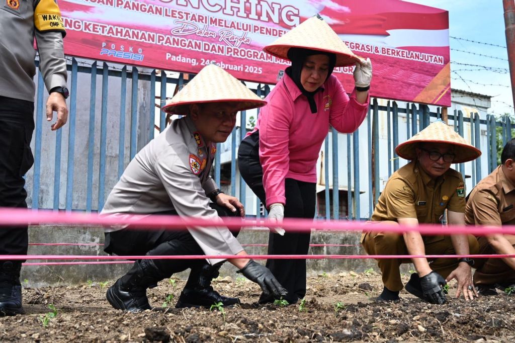 TBNEWSSUMBAR.ID —Kapolda Sumbar Irjen. Pol. Dr. Drs Gatot Tri Suryanta, M.Si, CSFA., menghadiri launching Penguatan Program Pekarangan Pangan Lestari Melalui Pendekatan Terintegrasi dan Berkelanjutan di Mapolsek Koto Tangah, Kota Padang Senin, (24/02/2025) dalam rangka mendukung ketahanan pangan serta program makan bergizi gratis.