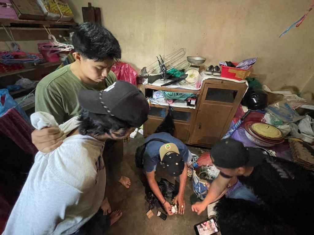 Dalam penangkapan tersebut, polisi menemukan barang bukti sebesar 6 paket yang di duga narkotika jenis sabu di saku celana yang di gunakan pelaku saat itu, setelah di lakukan penggeledahan di rumah pelaku, polisi menemukan sejumlah barang bukti lainnya di antaranya dua paket sedang dan satu paket yang lebih besar, alat hisap beserta satu buah timbangan yang di simpan pelaku di dalam sebuah ember di dapur rumahnya.