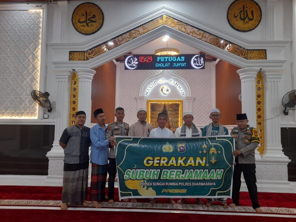 TBNEWSSUMBAR.ID –Personel Polsek Sungai Rumbai, Polres Dharmasraya, Polda Sumbar, melaksanakan Gerakan Sholat Subuh Berjamaah (GSB) bersama masyarakat di Masjid AR-Rahman, Jorong Bukit Berbunga, Nagari Sungai Rumbai Timur, Kecamatan Sungai Rumbai. Selasa, (15/04/2025), 05.00 WIB.