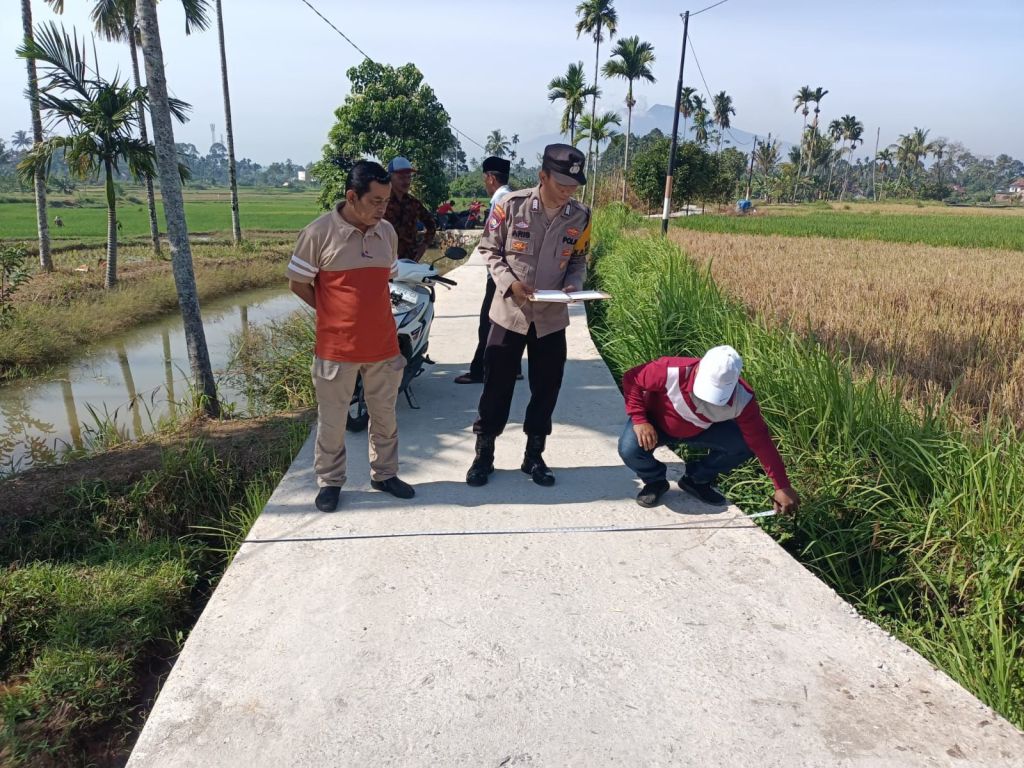 Bhabinkamtibmas yang tergabung dalam Tim Pemantau Kegiatan Nagari, secara aktif turut melakukan pengecekan lapangan atas pembangunan lanjutan jalan rabat beton menuju lahan pertanian serta pembangunan saluran irigasi sawah milik warga setempat.