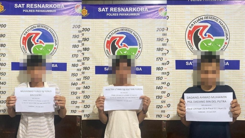 Kapolres Payakumbuh AKBP Ricky Ricardo, S.I.K.S.H.M.H melalui Kasat Narkoba AKP Hendra, S.H. mengatakan, penangkapan ketiga tersangka merupakan hasil penyelidikan jajaranya kepada salah satu orang tersangka yang masuk ke dalam Target Operasi (TO), namun dalam prosesnya dalam sekali dayung dua, tiga pulau terlampaui dengan meringkus dua tersangka lainya.