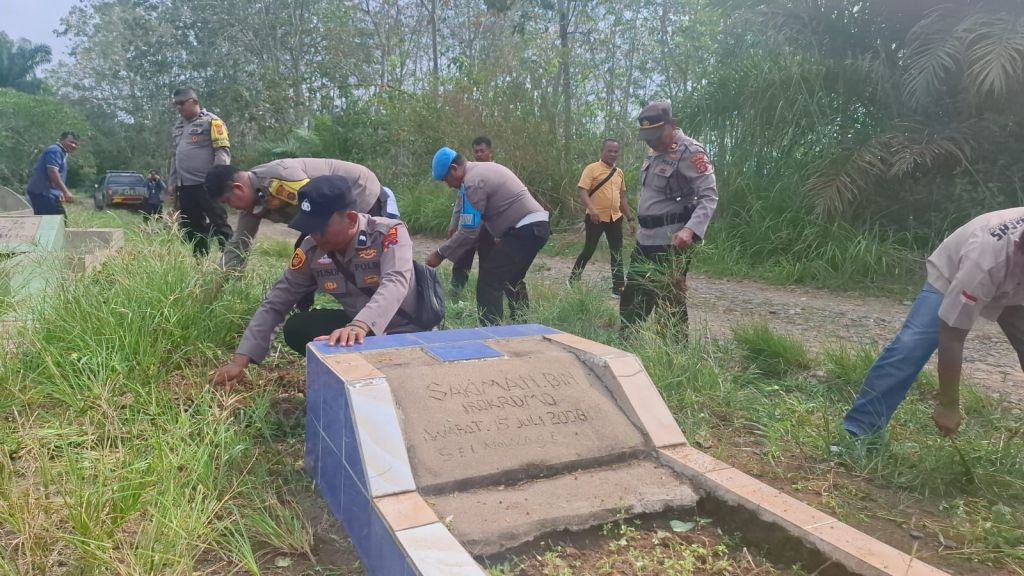 TBNEWSSUMBAR.ID | Dharmasraya – Dalam rangka menyambut Hari Bhayangkara ke-79, Polsek Sitiung I Koto Agung Polres Dharmasraya melaksanakan kegiatan bakti religi di Pemakaman Umum Jorong Teluk Sikai, Nagari Sungai Duo, Kecamatan Sitiung, Kamis (26/6/2025).