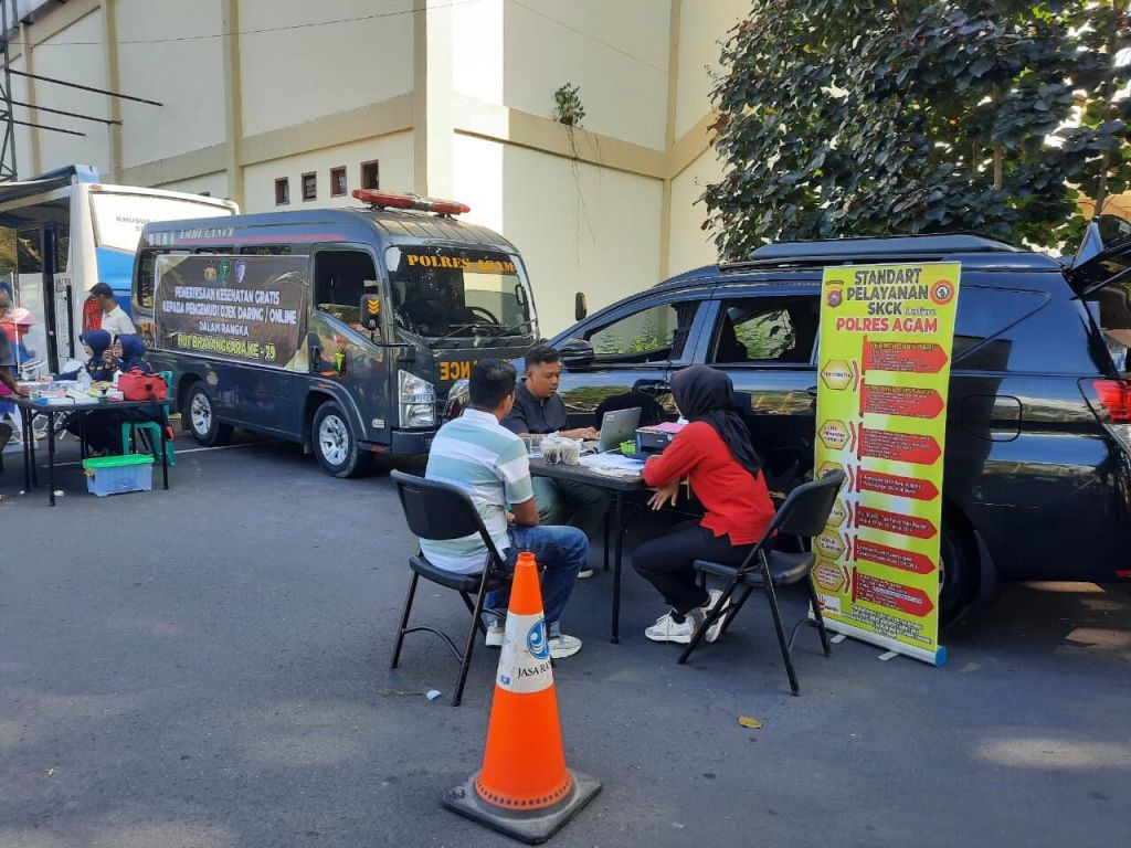 Pelaksanaan ini didampingi oleh dokter Mitra Klinik Polres Agam, Kasie dokkes Anggota Sidokkkes Kasat Lantas dan Kasat Intel yang di pimpin oleh Kabagops Polres Agam Kompol Benziliel Mendrofa SH MH.
