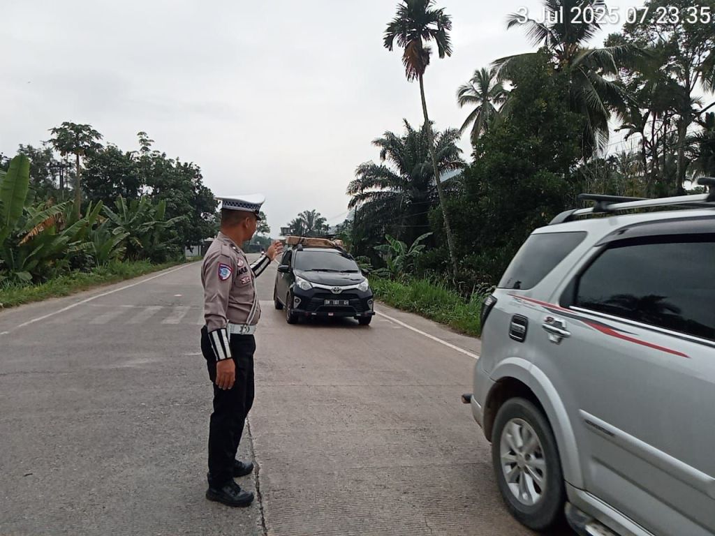 TBNEWSSUMBAR.ID – Dalam rangka memberikan pelayanan prima kepada masyarakat, Personel Satuan Lalu Lintas Polres Dharmasraya, Polda Sumbar, melaksanakan pengaturan arus lalu lintas pagi hari di Simpang Polres Gunung Medan, Kecamatan Sitiung, Rabu (3/7/2025).