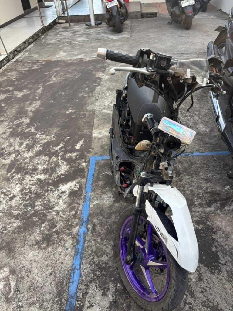 Kecelakaan melibatkan dua unit sepeda motor, yaitu Honda Beat BA 5238 QS yang dikendarai oleh Rahmad Alfarindo Zakri (17), dan sepeda motor Yamaha Mio tanpa nomor polisi yang dikendarai oleh Muhammad Razif (21). Keduanya diketahui tidak memiliki Surat Izin Mengemudi (SIM).