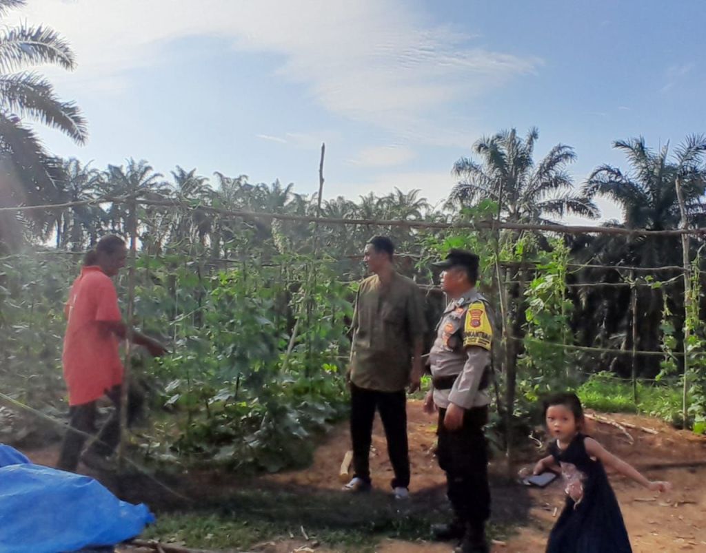 Dalam kunjungan itu, Bripka Saparudin melihat langsung pekarangan yang ditanami sayur gambas sebagai bagian dari program “Pekarangan Sehat Bergizi”.
