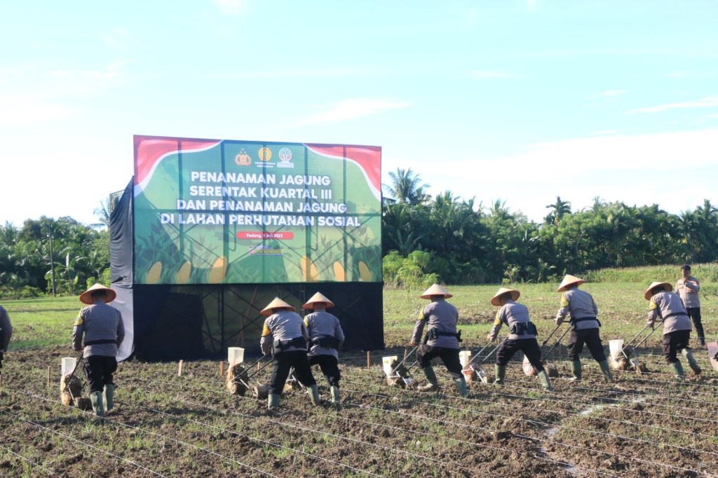 TBNews Sumbar – Kapolda Sumatera Barat, Irjen. Pol. Drs. Gatot Tri Suryanta, M.Si., CSFA, menghadiri kegiatan Penanaman Jagung Serentak Kuartal III yang dilaksanakan pada Rabu (9/7) siang, di Perumahan Navila Dagoes Permai, Koto Tangah, Kota Padang.
