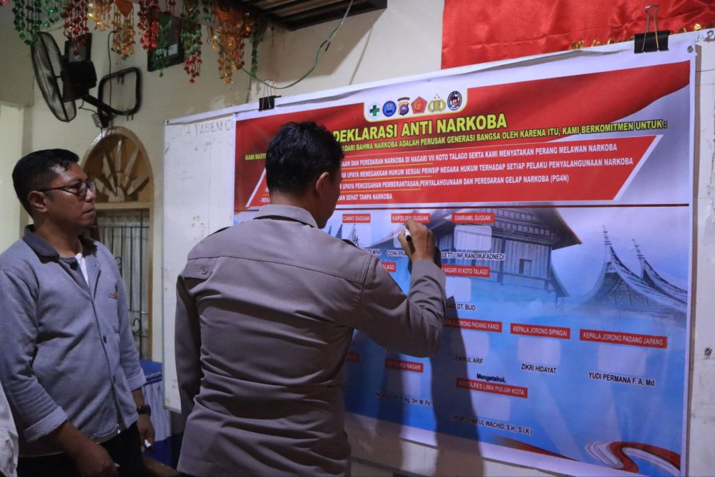 TBNEWSSUMBAR.ID — Kapolres 50 Kota AKBP Syaiful Wachid , S.H.,S.I.K. memimpin langsung kegiatan Deklarasi Kampung Bebas Narkoba yang dilaksanakan di Nagari VII Koto Talago, Kecamatan Guguak, Kabupaten Lima Puluh Kota, pada hari Jumat, 11 Juli 2025.