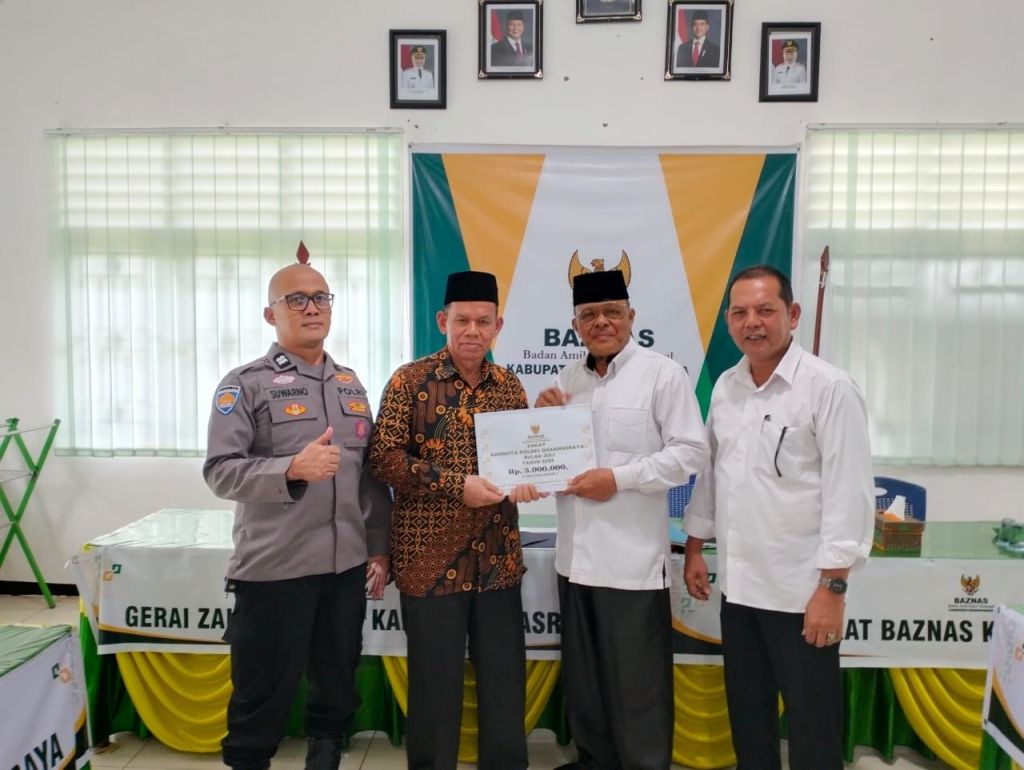 Kapolres Dharmasraya AKBP Purwanto Hari Subekti, S.Sos. mengatakan, penyerahan zakat ini sebagai wujud kepedulian Polres kepada masyarakat yang membutuhkan.