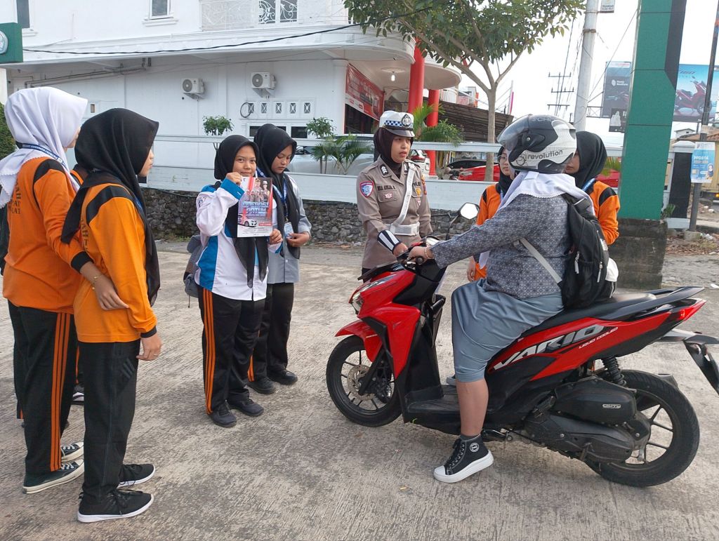 Sosialisasi tersebut, seiring dengan pelaksanaan Operasi Patuh Singgalang 2025, yang dipimpin oleh Kasat Lantas AKP Rina Aryanti, S.Tr.K., S.Ik didampingi Kanit Kamsel Aiptu Harion Eka Putra, dan Brigadir Nia Aulia Rahayu.