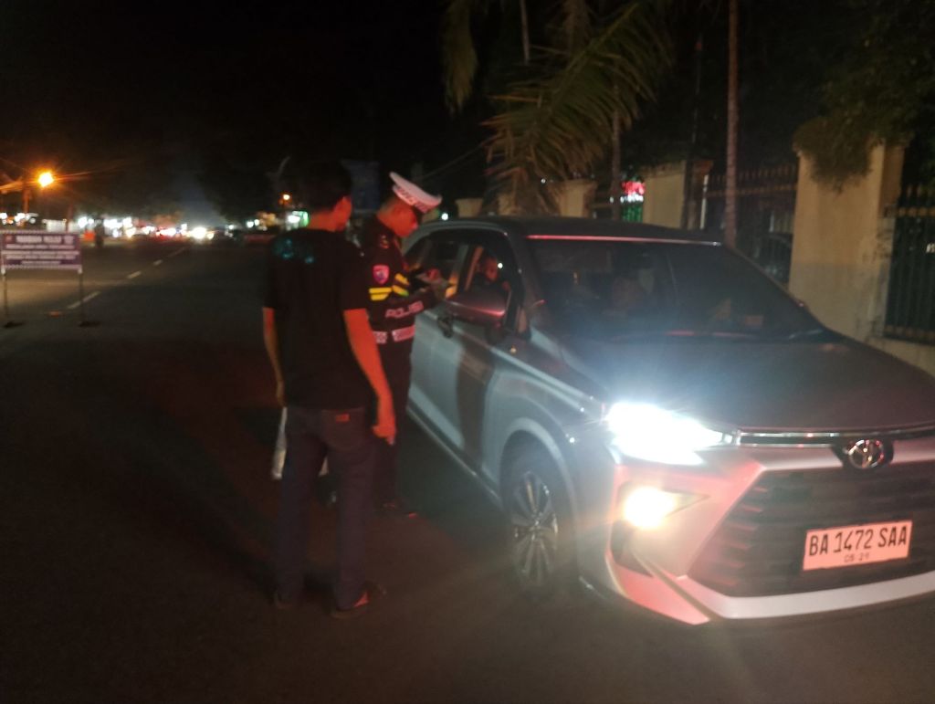 TBNEWSSUMBAR.ID — Dalam rangka pencegahan aksi balap liar, Satuan Polisi Lalu Lintas (Satlantas) Polres Pasaman Barat, Sumatera Barat (Sumbar), menggelar razia penindakan pelanggaran lalu lintas secara stationer di depan Mako Satlantas setempat pada Sabtu (19/7/2025) malam.