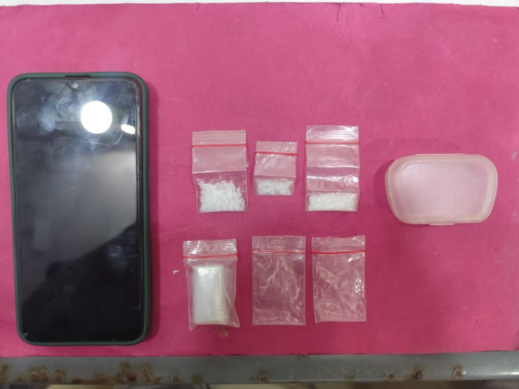Kemudian langsung dilakukan penangkapan dan penggeledahan, hasilnya petugas kepolisian menemukan barang bukti berupa dua paket plastik klip bening berisikan butiran kristal bening diduga sabu.