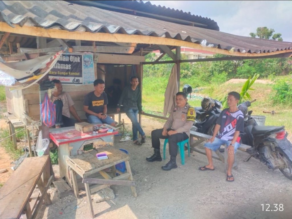 Kali ini, Bhabinkamtibmas mendatangi pos ojek di wilayah Nagari Baru Sungai Kambut. Ia berdialog santai dengan para tukang ojek dan warga sekitar. Senin, (4/07/2025).