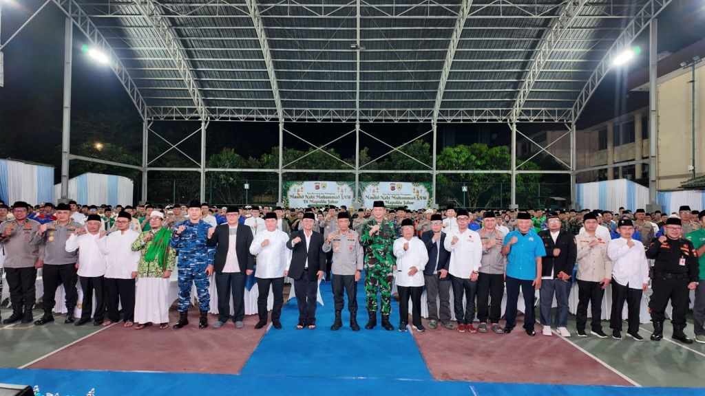 Bandung – Suasana khidmat menyelimuti Markas Polda Jawa Barat pada Minggu (7/9/2025) malam. Ratusan peserta dari unsur TNI, Polri, Forkopimda, tokoh agama, tokoh masyarakat, komunitas ojek online, hingga elemen masyarakat lainnya berkumpul dalam doa bersama memperingati Maulid Nabi Muhammad SAW 1447 H.