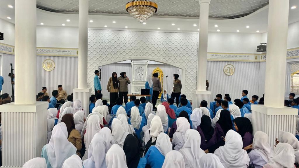 Para Polwan menyampaikan materi terkait bahaya kenakalan remaja, bijak dalam bermedia sosial, serta pentingnya disiplin dan tanggung jawab dalam meraih cita-cita.