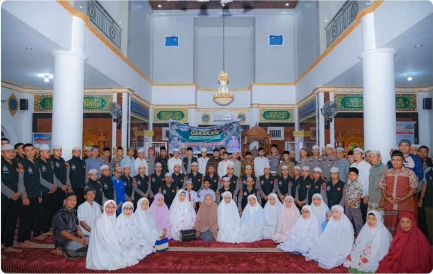 Kegiatan yang berlangsung mulai pukul 05.00 WIB ini diikuti oleh berbagai personel kepolisian dan jamaah masjid setempat.