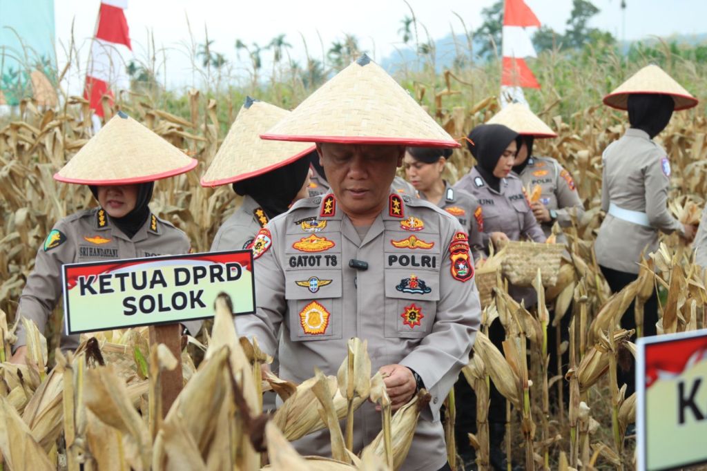 TBNews Sumbar – Kepala Kepolisian Daerah (Kapolda) Sumatera Barat, Irjen Pol Dr. Drs. Gatot Tri Suryanta, M.Si., CSFA., memimpin acara Panen Raya Jagung Kuartal III di lahan ketahanan pangan Polres Solok, yang berlokasi di Jorong Sukarami, Nagari Koto Gaek Guguak, Kecamatan Gunung Talang, Kabupaten Solok, pada Sabtu (27/9).