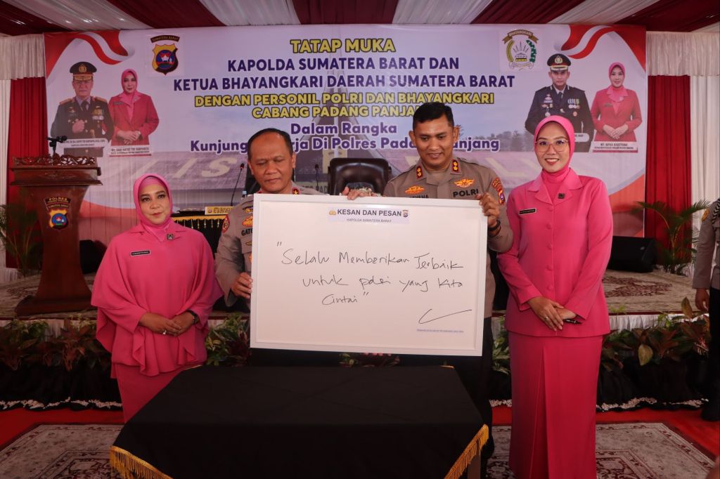Padang panjang, TBNews Sumbar — Kapolda Sumatera Barat Irjen Pol. Dr. Drs. Gatot Tri Suryanta, M.Si., CSFA., bersama Ketua Bhayangkari Daerah Sumbar Ny. Sari Gatot Suryanta, melaksanakan kunjungan kerja ke polres padang panjang,Kunjungan kerja ini bertujuan memperkuat soliditas internal, mmberikan arahan kepada personel Polres padang panjang, serta menjalin silaturahmi dengan jajaran pemerintah daerah padang panjang Selasa 7/10.