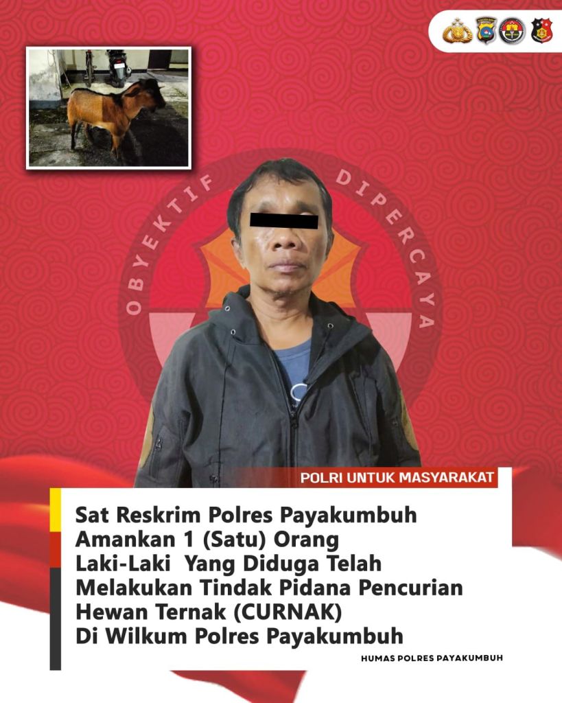 Payakumbuh – Gabungan Tim Opsnal Sat Reskrim Polres Payakumbuh bersama Tim Opsnal Polsekta Payakumbuh meringkus seorang tersangka pelaku pencurian ternak jenis Kambing di sebuah pondok yang beralamat di Kelurahan Koto Panjang Dalam Kecamatan Lamposi Tigo Nagari, Jum’at (3/10).