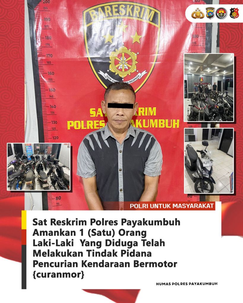 Payakumbuh – Sat Reskrim Polres Payakumbuh meringkus seorang terduga pelaku tindak pidana pencurian kendaraan bermotor ( curanmor ), Jum’at (10/10).