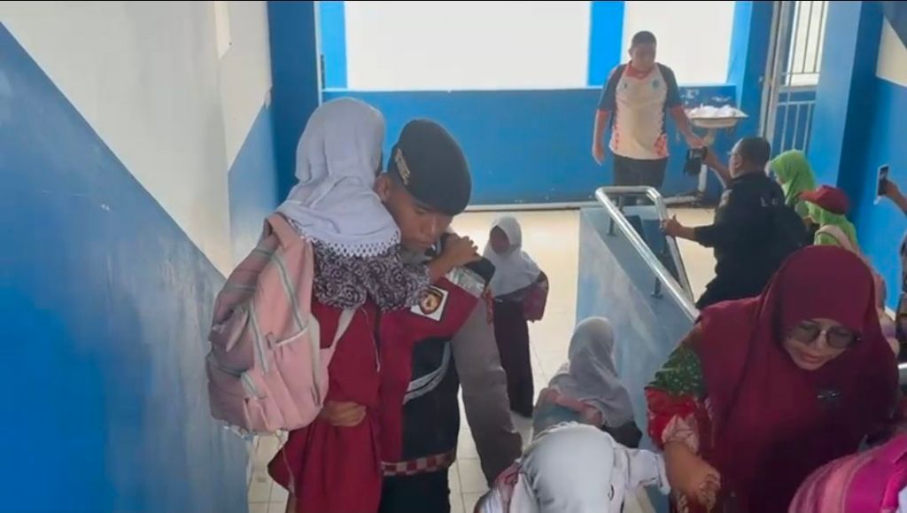 “Kami prioritaskan anak-anak dan lansia. Jangan panik, ikuti arahan kami!” seru AKP Heru Gunawan, salah satu petugas yang memimpin evakuasi di SMPN 7 Padang.