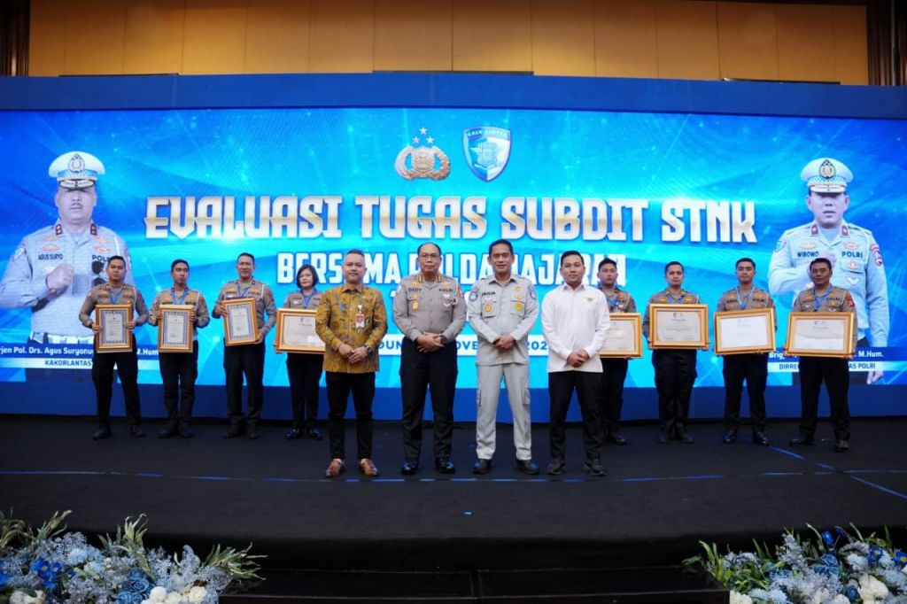 Pada hari pertama kegiatan, Rabu (12/11), Ditlantas Polda Sumbar menerima penghargaan nasional di bidang Peningkatan Keterisian Data Regident, Digitalisasi Pembayaran Samsat, dan Sosialisasi Keselamatan Lalu Lintas.