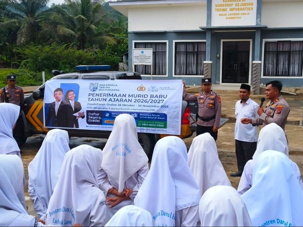 Salah satu  jajaran Polres Sijunjung, adalah Polsek Lubuk Tarok dengan di pimpin langsung oleh Kapolsek Iptu Weli Wahyudi SH.MH  bersama personilnya juga gencar dam inten  melaksanakan kegiatan sosialisasi  penerimaan SMA Kemala Taruna Bhayangkara ke sekolah sekolah SMP (Sekolah Menengah Pertama) yg ada di wilayahnya, salah satunya adalah kepada para siswa-siswi pondok pesantren Darul Falah Lubuk Tarok pada Senin (18/11/2025)
