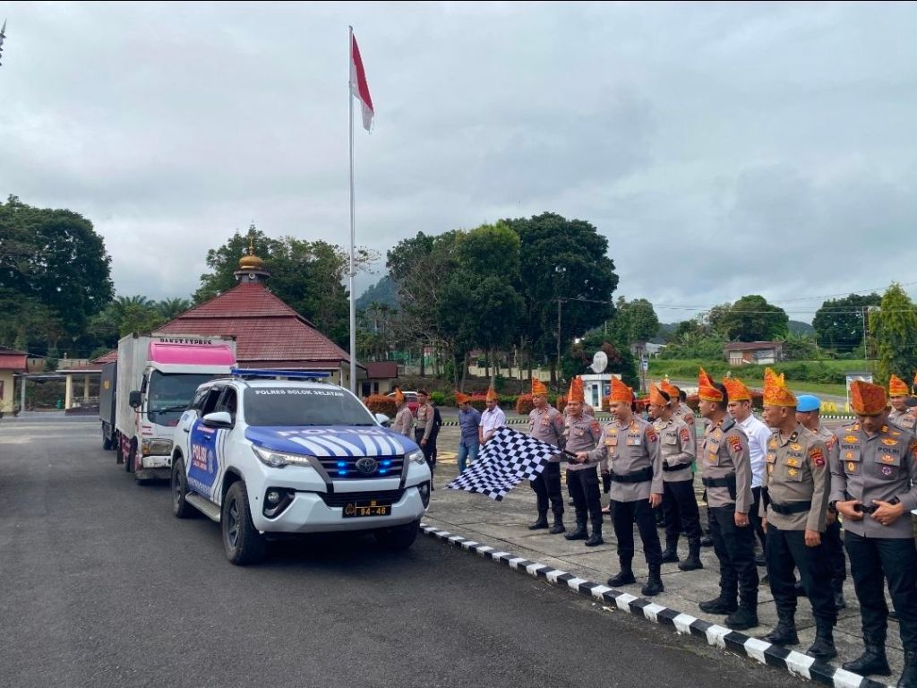 Pelepasan dua armada truk pembawa bantuan tersebut dipimpin langsung oleh Kapolres Solok Selatan, AKBP M. Faisal Perdana, S.I.K, didampingi para Pejabat Utama (PJU) dan personel Polres Solok Selatan.