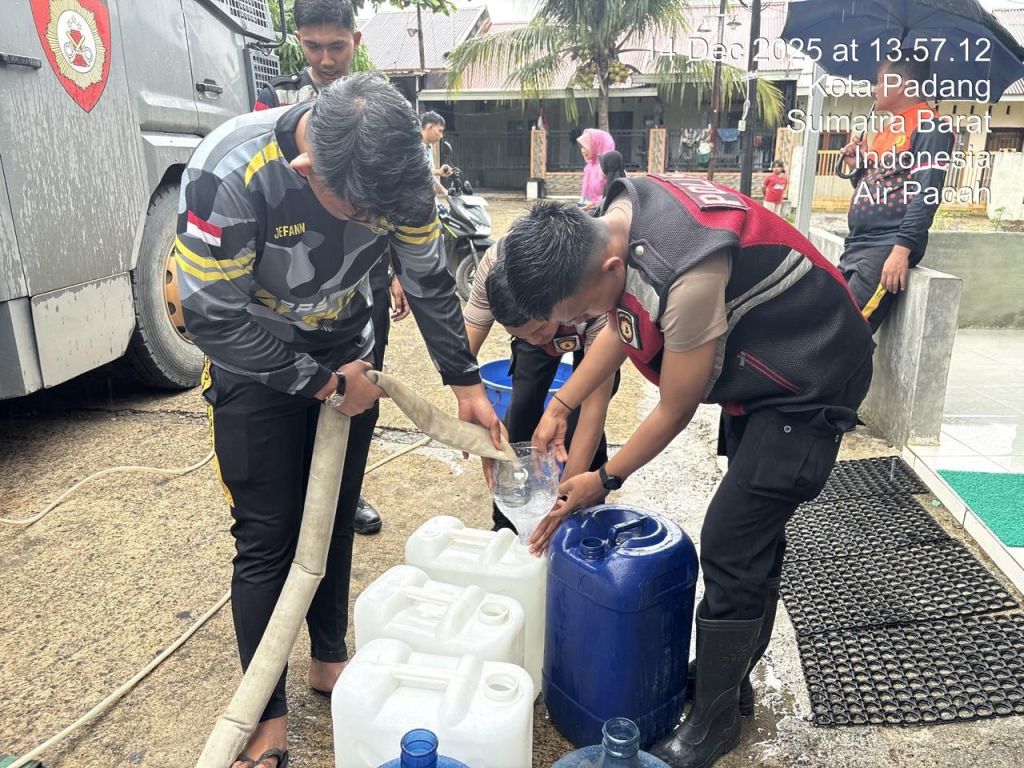 TBNews Sumbar – Direktorat Samapta (Dit Samapta) Kepolisian Daerah Sumatera Barat (Polda Sumbar) mengerahkan personel Dalmas Regu II Siaga Bencana untuk mendukung penyaluran air bersih kepada masyarakat yang terdampak bencana banjir bandang dan tanah longsor di Kota Padang. Kegiatan ini dilaksanakan pada Minggu, 14 Desember 2025.