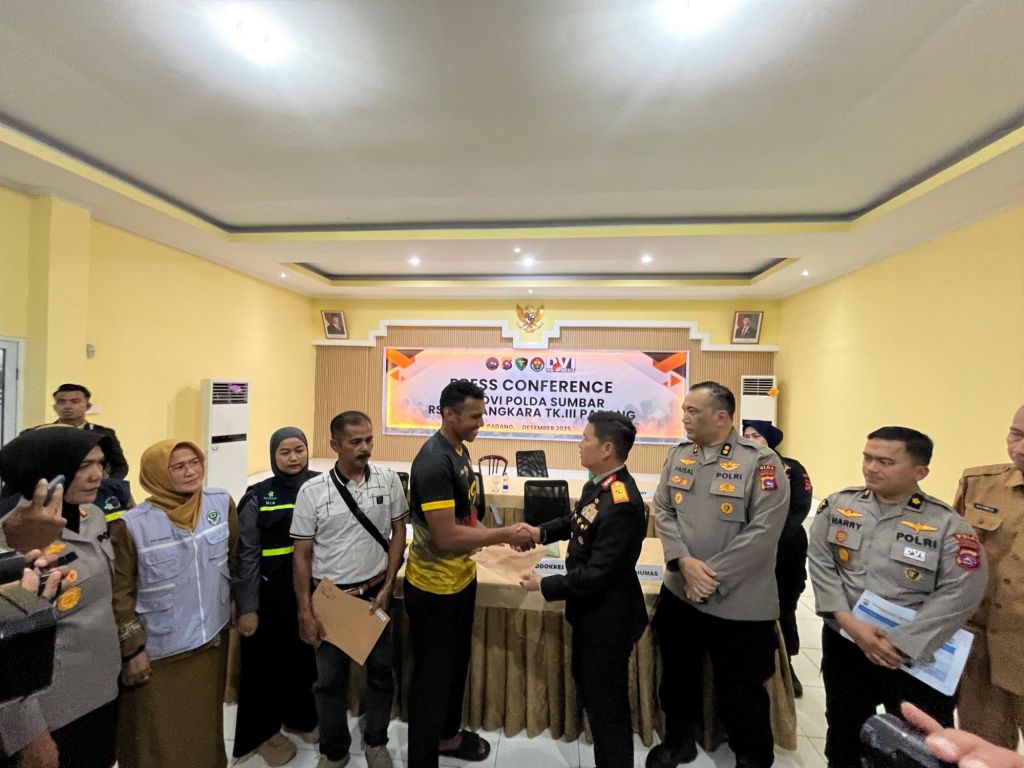 TBNews Sumbar – Polda Sumatera Barat menyerahkan sertifikat identifikasi jenazah kepada enam keluarga korban bencana galodo (banjir bandang) yang telah terverifikasi melalui pemeriksaan DNA. Penyerahan dilakukan dalam konferensi pers di Aula Rumah Sakit Bhayangkara TK III Padang, Senin (22/12/2025).