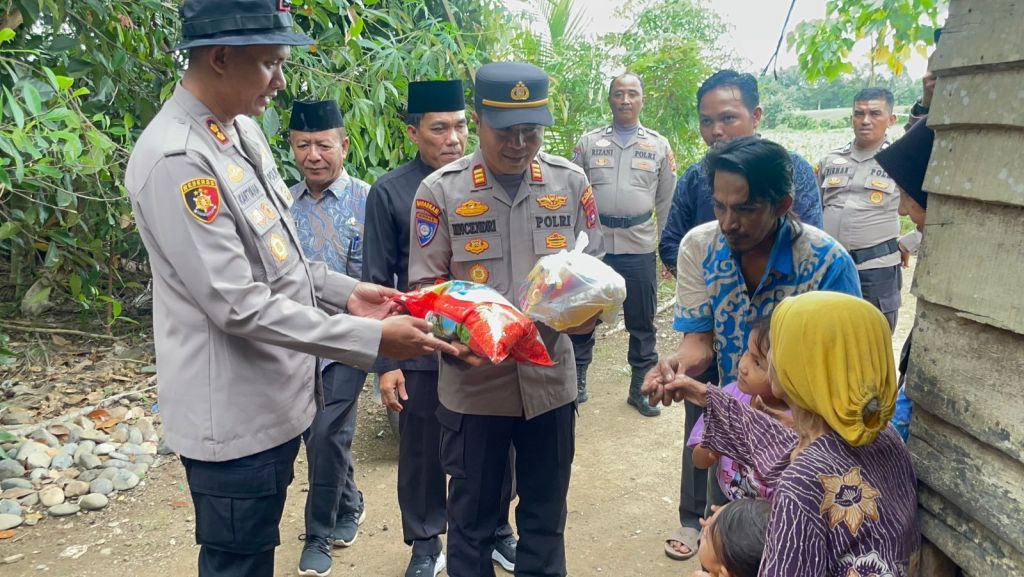 Penyerahan bantuan tersebut dilakukan langsung oleh Kapolres Dharmasaraya dan didampingi oleh Wakapolres Kompol Rizky Cholid, para Pejabat Utama (PJU) Polres Dharmasaraya, Camat setempat, serta Wali Nagari.