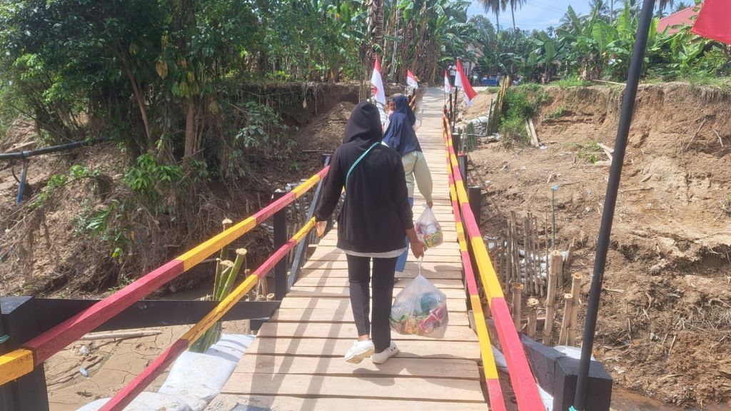 Pembangunan jembatan ini menjadi potret nyata semangat gotong royong. Personel Brimob bersama warga bahu-membahu menyelesaikan konstruksi jembatan yang menjadi akses vital bagi mobilitas ekonomi, pendidikan, hingga aktivitas sosial sehari-hari.