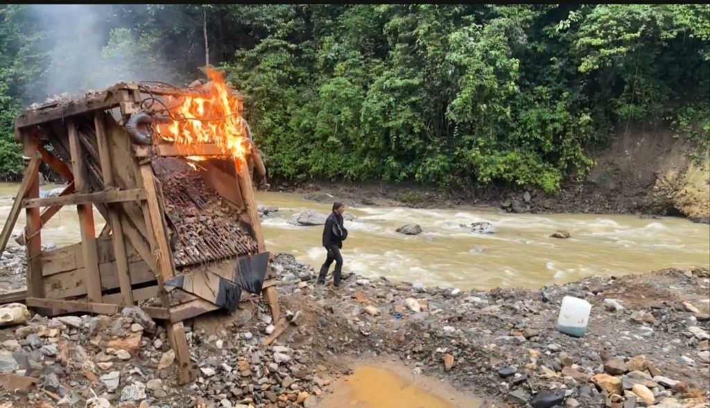 “Saat tiba di lokasi, kami menemukan satu unit alat berat yang diduga rusak, tenda penambang, serta box penyaring. Sebagai tindakan tegas, tim di lapangan langsung melakukan pengamanan terhadap alat berat, memasang police line, serta memusnahkan tenda dan peralatan tambang dengan cara dibakar agar tidak dapat dipergunakan kembali,” ujar Kombes Pol Andry Kurniawan, Kamis malam.