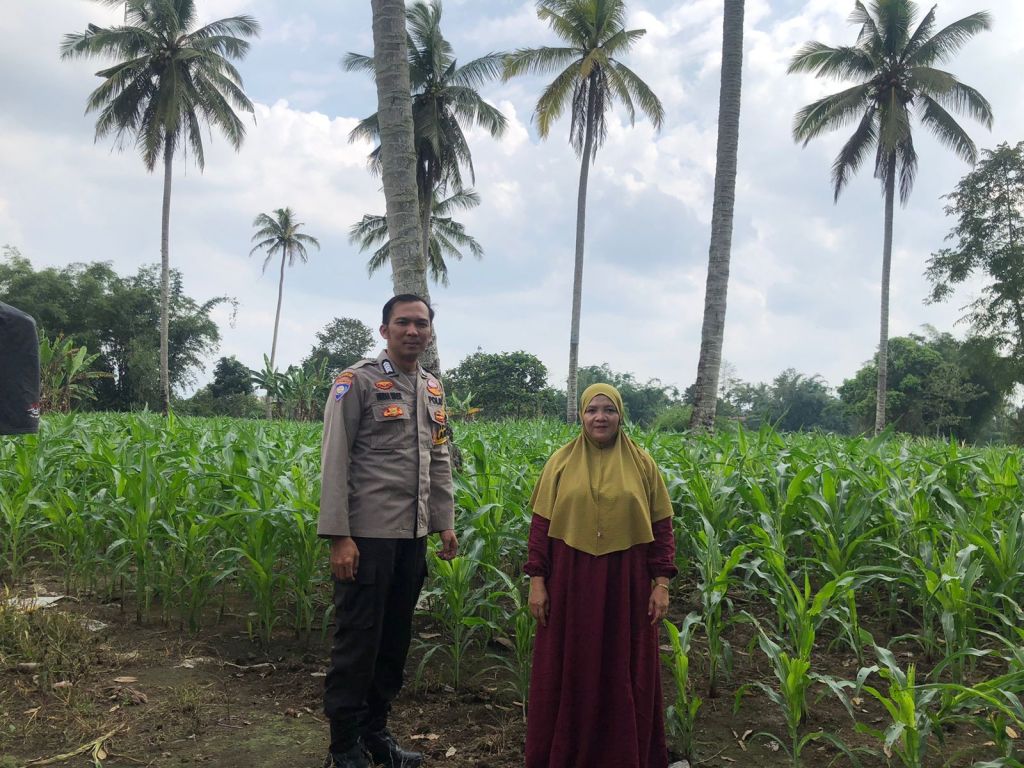 Dalam kegiatan tersebut, Bhabinkamtibmas mengunjungi lahan jagung milik warga sebagai bentuk kepedulian Polri terhadap sektor pertanian sekaligus memberikan motivasi kepada para petani.