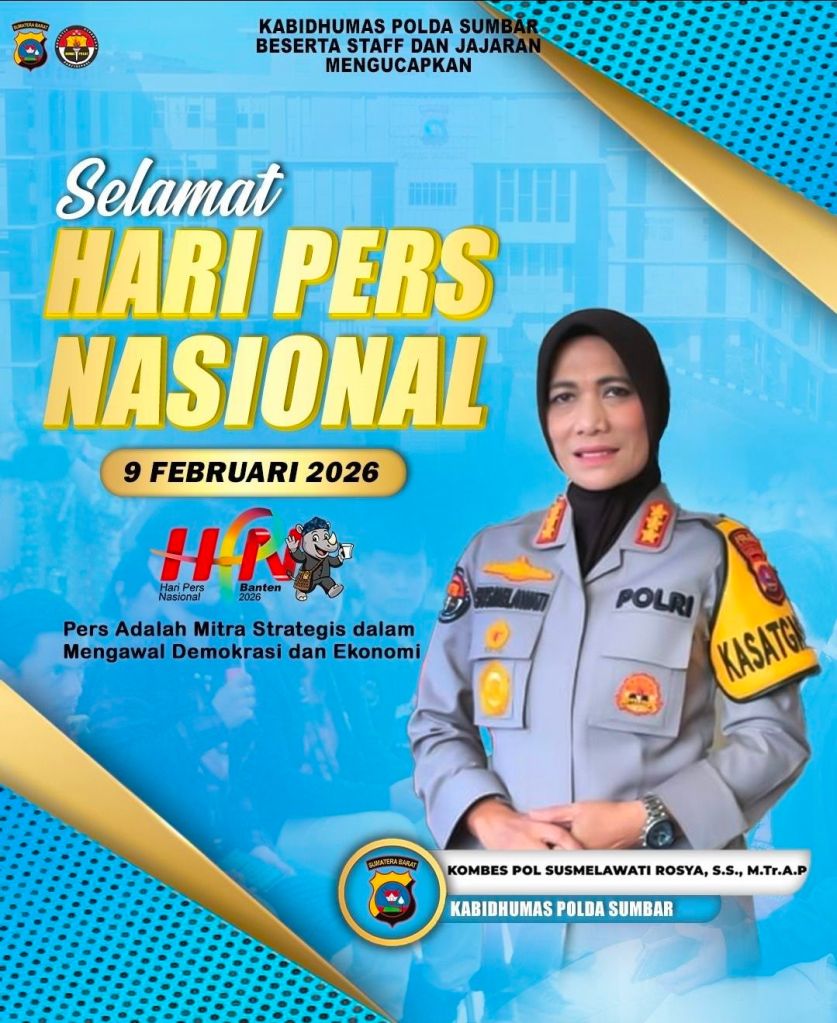 TBNews Sumbar – Peringatan Hari Pers Nasional (HPN) 2026 menjadi momentum krusial untuk memperkuat sinergi antara insan pers dan institusi kepolisian. Kepala Bidang Hubungan Masyarakat (Kabid Humas) Polda Sumatera Barat, Kombes Pol. Susmelawati, S.S., M.Tr.A.P., menegaskan bahwa fungsi kehumasan Polri sejatinya berkaitan erat dengan peran jurnalis.